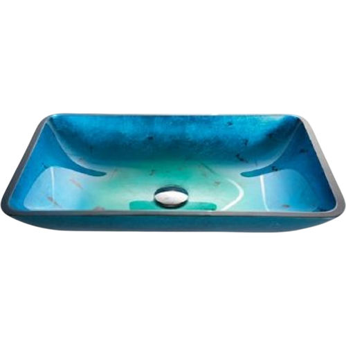 KRAUS GVR-204-RE-CH IRRUPTION 22 INCH BLUE RECTANGULAR GLASS VESSEL SINK, CHROME
