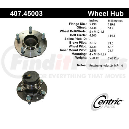 Centric (407.45003) Wheel Hub Assembly