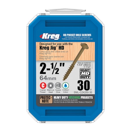 Kreg SML-C2X250-30 2-1/2 In. Course 30ct #14 HD Protec-Kote Maxi-Loc Pocket-Hole Screws