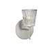 1SW-512500-SN Finish: Satin Nickel, Shade Color: Clear Stone, Size: 7.5" H x 5" W x 5.25" D Features: -One light wall sconce.-Installs directly to a 4'' octagonal outlet box.-Handcrafted glass.-ETL listed.-Suitable for damp locations (interior use only). Includes: -Accommodates (1) 40W G9 halogen bulb (included). Construction: -Steel construction. Specifications: -120 Volts. Dimensions: -Shade dimensions: 3'' H x 3.25'' W x 3.25'' D.-7'' Wall sconce dimensions: 7'' H x 5'' W x 5'' D.-7.5'' Wall sconce dimensions: 7.5'' H x 5'' W x 5.25'' D. Collection: -Nico collection. Warranty: -Manufacturer provides one year warranty.