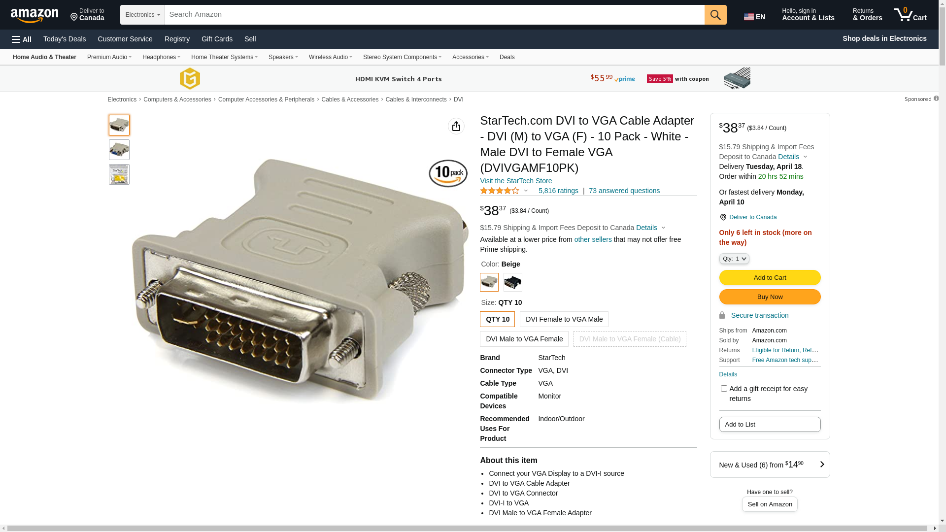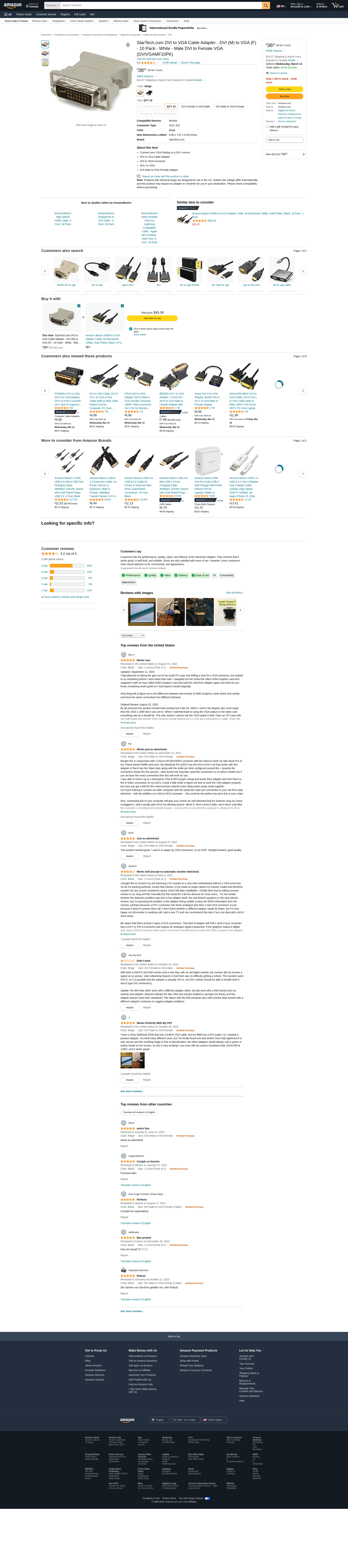 Buy StarTech.com DVI to VGA Cable Adapter - DVI (M) to VGA (F) - 10 Pack - White - Male DVI to Female VGA (DVIVGAMF10PK): DVI - Amazon.com ? FREE DELIVERY possible on eligible purchases