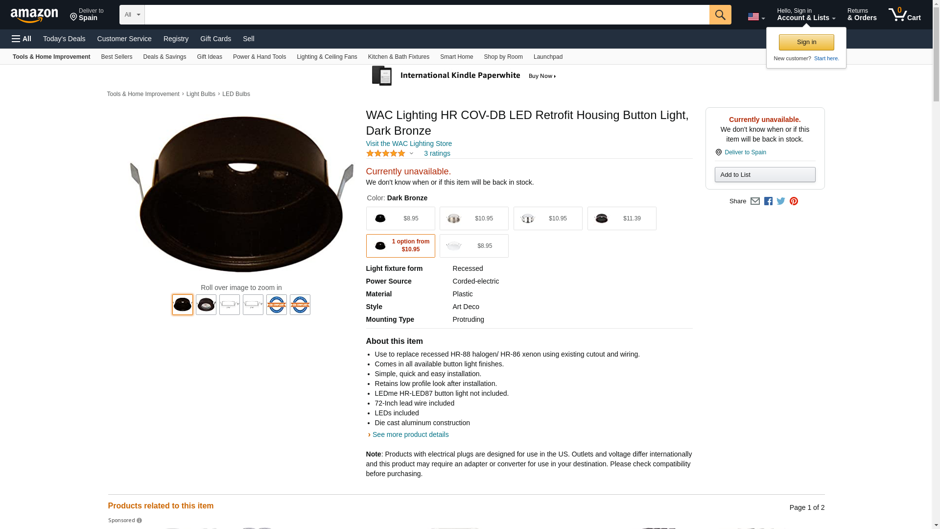 | HR-LED-COV-DB | 1 | WAC LTG Orders over $150 Usually Ship Next Day Otherwise 5-7 days | 1 | 1 @ $10.95 | |
