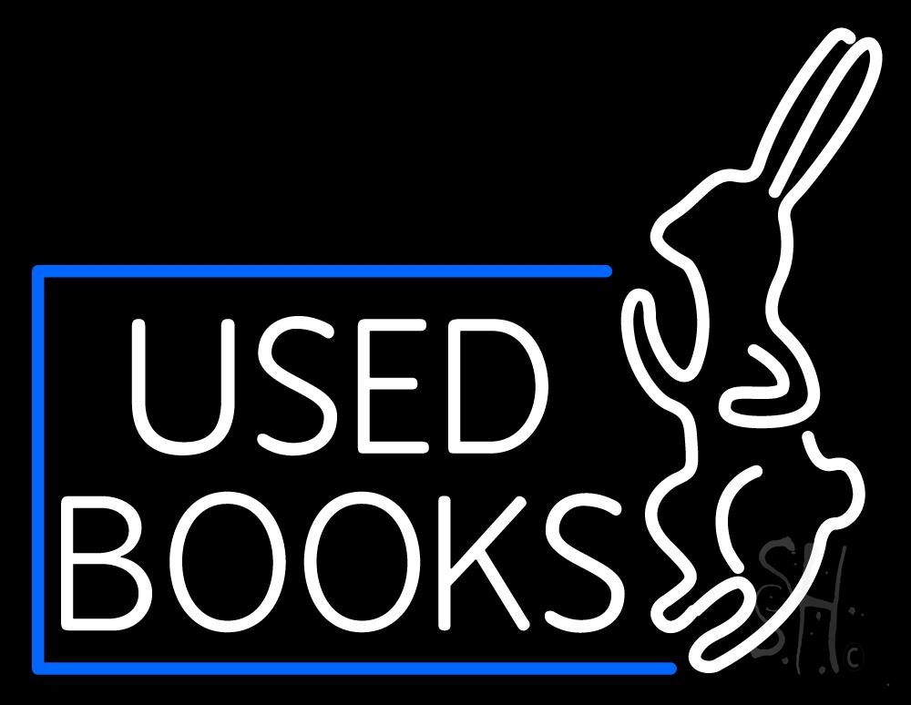 The Sign Store N105-2268 24 x 31 in. Used Books with Rabbit Logo Neon Sign - White & Blue