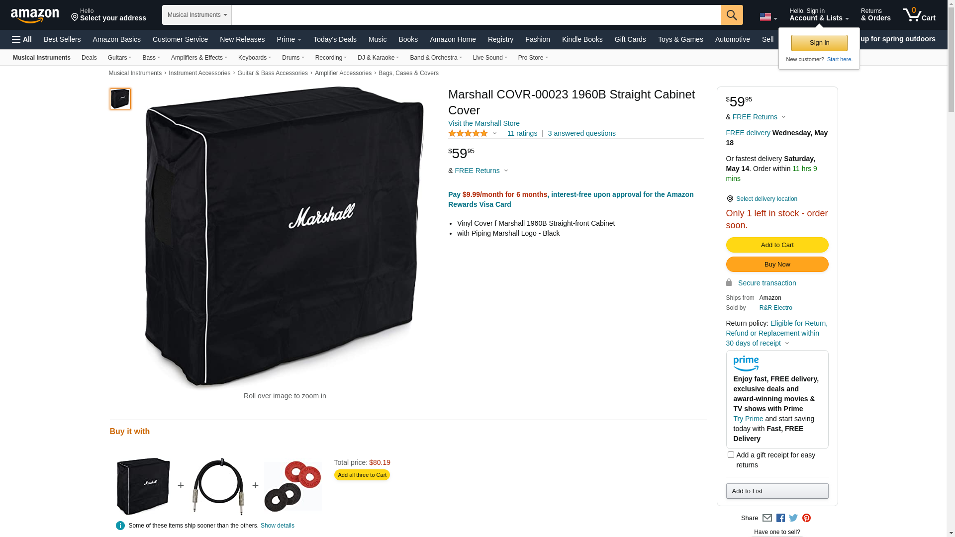 Marshall COVR-00023 1960B Straight Cabinet Cover