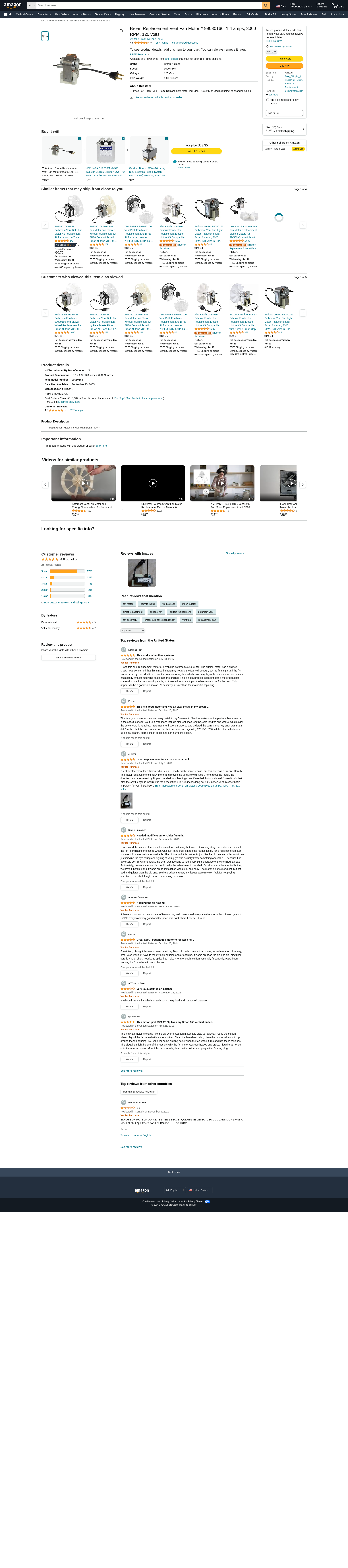 Broan Replacement Vent Fan Motor # 99080166, 1.4 amps, 3000 RPM, 120 volts