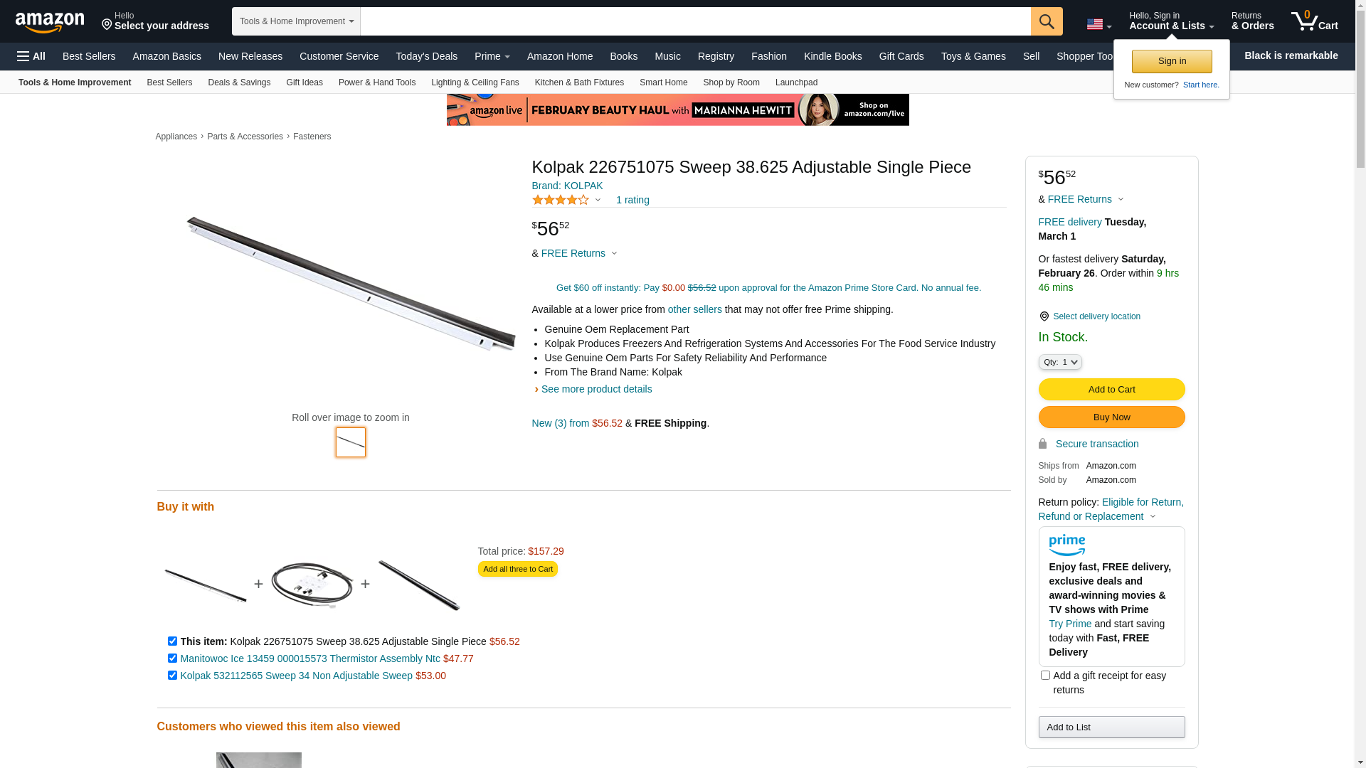 ![]() midwestapplianceparts.com | 22675-1075-KOL-P | 1 | 1 | 1 @ $58.76 |