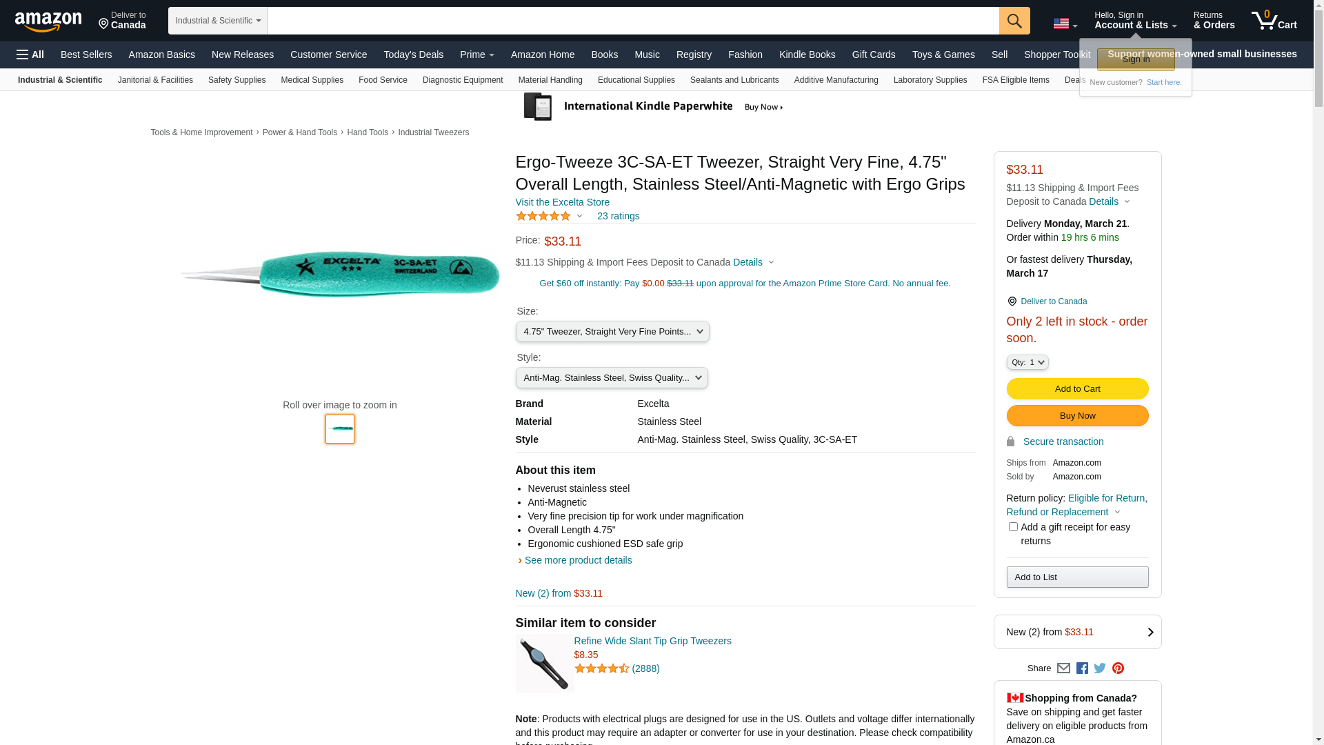 Ergo-Tweeze (ERGPL) - 3C-SA-SE-ET - Tweezers - Very Fine Point - Straight - One Star - Anti-Mag. SS - Ergonomic, 0.5" Height, 0.75" Wide, 4.75" Length
