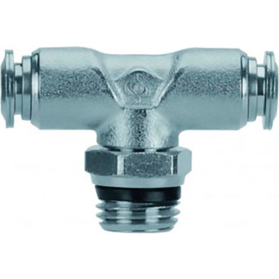 Swivel Branch Tee, Basic Material Plastic/Metal Combination, Body Material Composite, Connection Type Tube x Universal Thread, Tube Size 4mm, Pipe Size M5, Stem OD NA, Max. Pressure 250 psi, Color Black, Compliance ROHS , EN331, REACH, Gasket Material NBR70, Hex Size 7/16 In., Special Features Universal Thread System Compatible with Inch and Metric Threads, Temp. Range 0 Degrees to 160 Degrees F