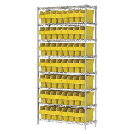 Akro-Mils AWS143630840Y Wire Shelving Kit with 64 Bins, 14" x 36" x 74", Chrome/Yellow