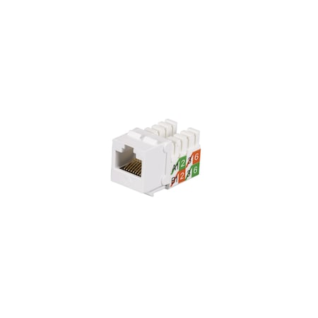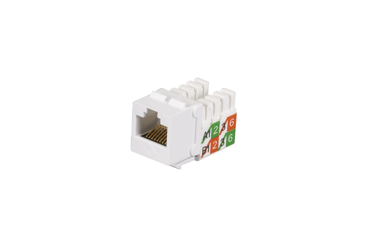 FMT929-R2 - Gigabase2 Cat5e Jack, Universal Wiring, White Features: Work with our GigaBase CAT5e Cables. High-density, compact design makes these jacks ideal for multimedia applications. Meet TIA/EIA-568-B.2 CAT5e standards. Data transmission rates up to 100 MHz. Completely backward compatible with CAT5 and CAT3 components. DETAILS Universal wiring. IDC contacts are phosphor bronze with tin plating. Labeled with both T568A and T568B wiring schemes. Nose contacts feature 50-micron gold plating over 100-micron nickel underplating. Make easy terminations using a 110 tool. The termination retention stuffer cap provides strain relief while enabling you to easily check terminations. Feature a keystone style for snap-in installation.