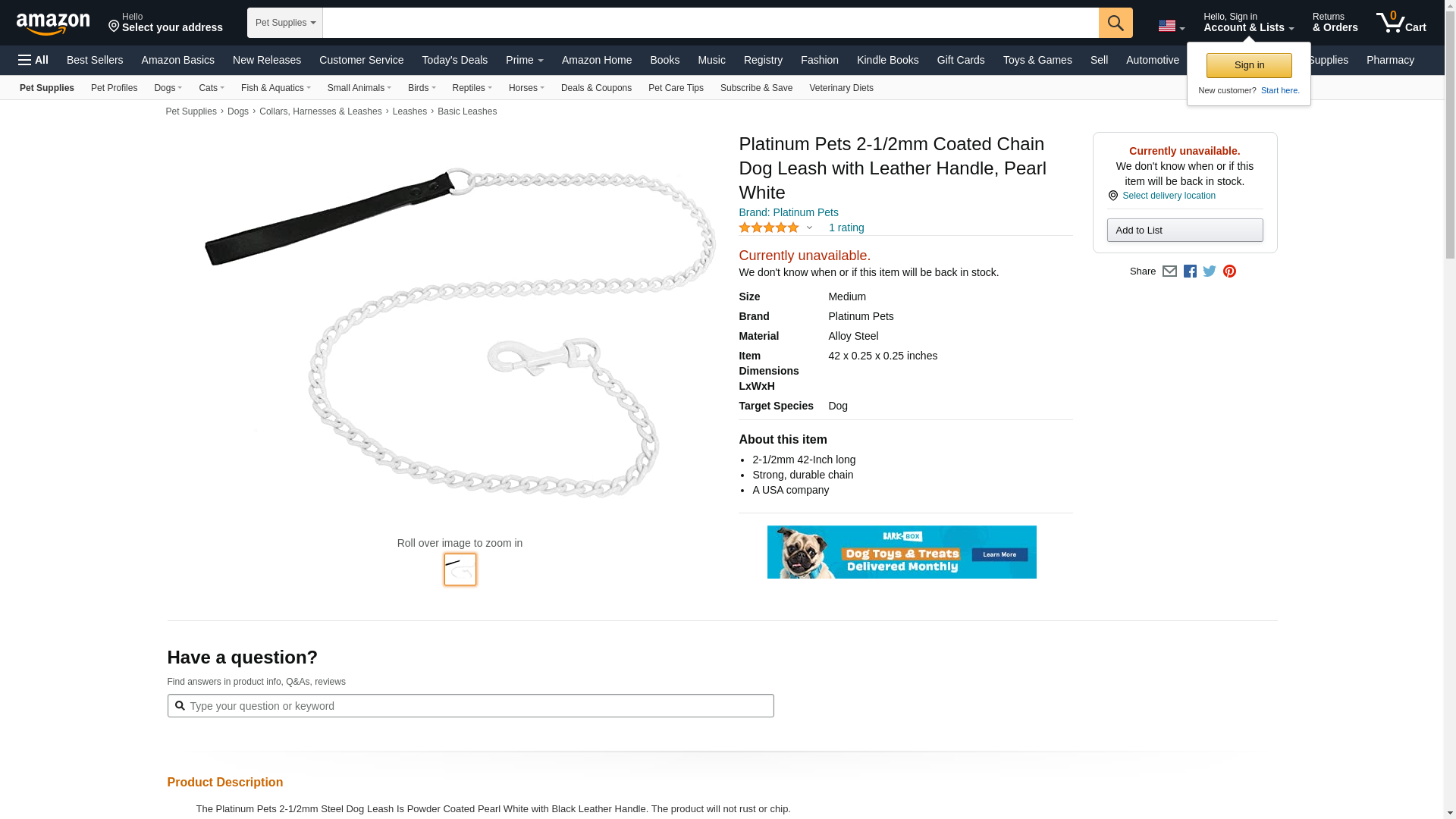 The Platinum Pets Chain Leash with Handle is the perfect accessory for all pet owners. The chain is chrome plated and individually powder coated for maximum strength and durability. This special coating guarantees a rustproof benefit to the chain. Our genuine leather and nylon handle is hand stitched ensuring durability and softness on the hands. Chain leash is available in a variety of electric colors to compliment your pet's personality. Platinum Pets offers a lifetime guarantee against rust with proof of purchase.