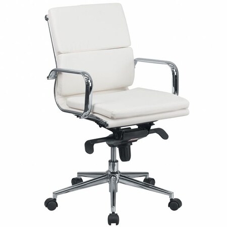 Flash Furniture Mid-Back White LeatherSoft Executive Swivel Office Chair with Synchro-Tilt Mechanism and Arms