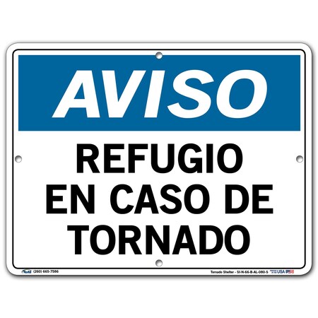 Vestil Spanish Notice Sign SI-N-66-B-AL-080-S Aluminum 0.08 Overall Size 12.5"W x 9.5"H. Refugio EN CASO DE Tornado, (Tornado Shelter).