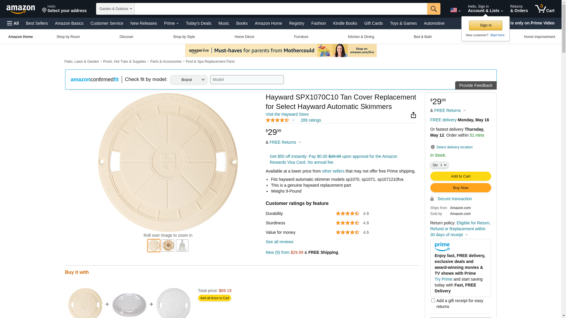 Hayward SPX1070C10 Tan Cover Replacement for Select Hayward Automatic Skimmers
