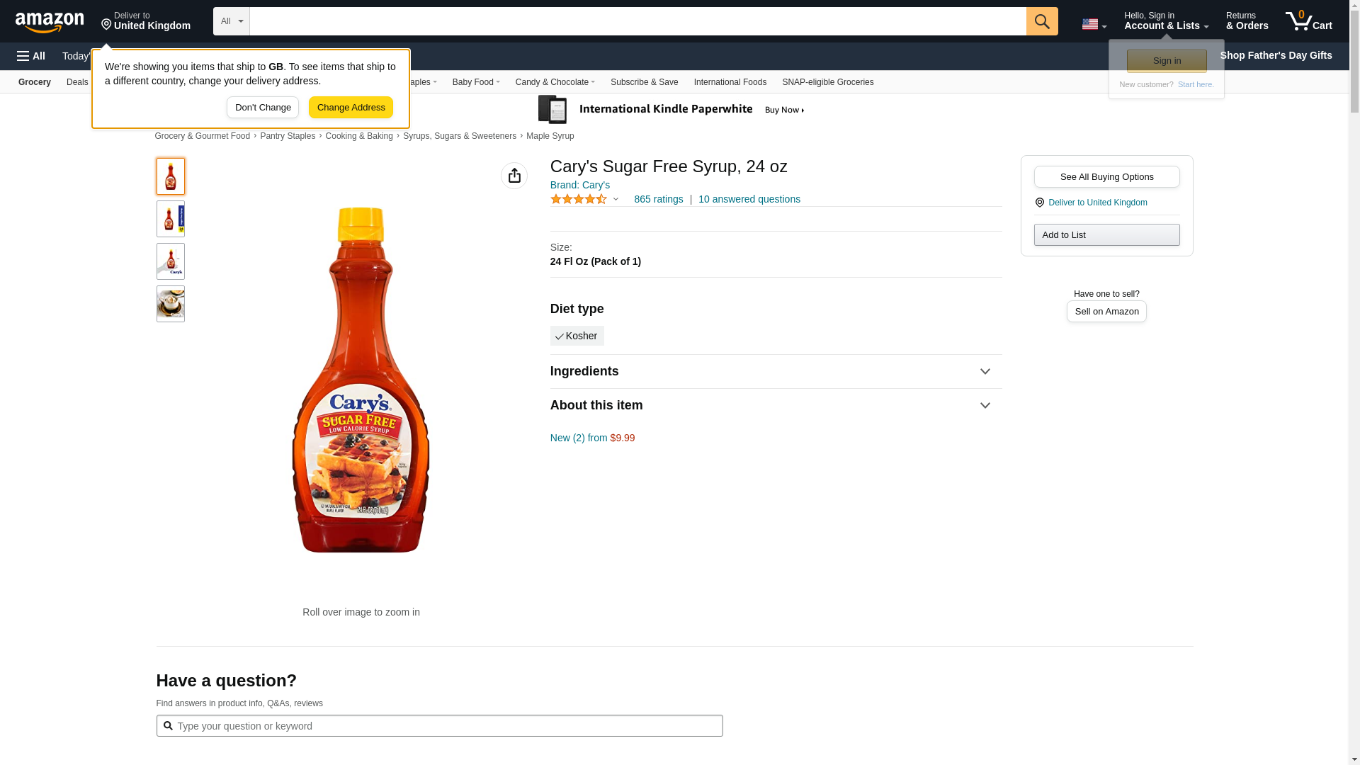 Cary's Sugar Free Syrup, 24 oz: Maxedbuy.com