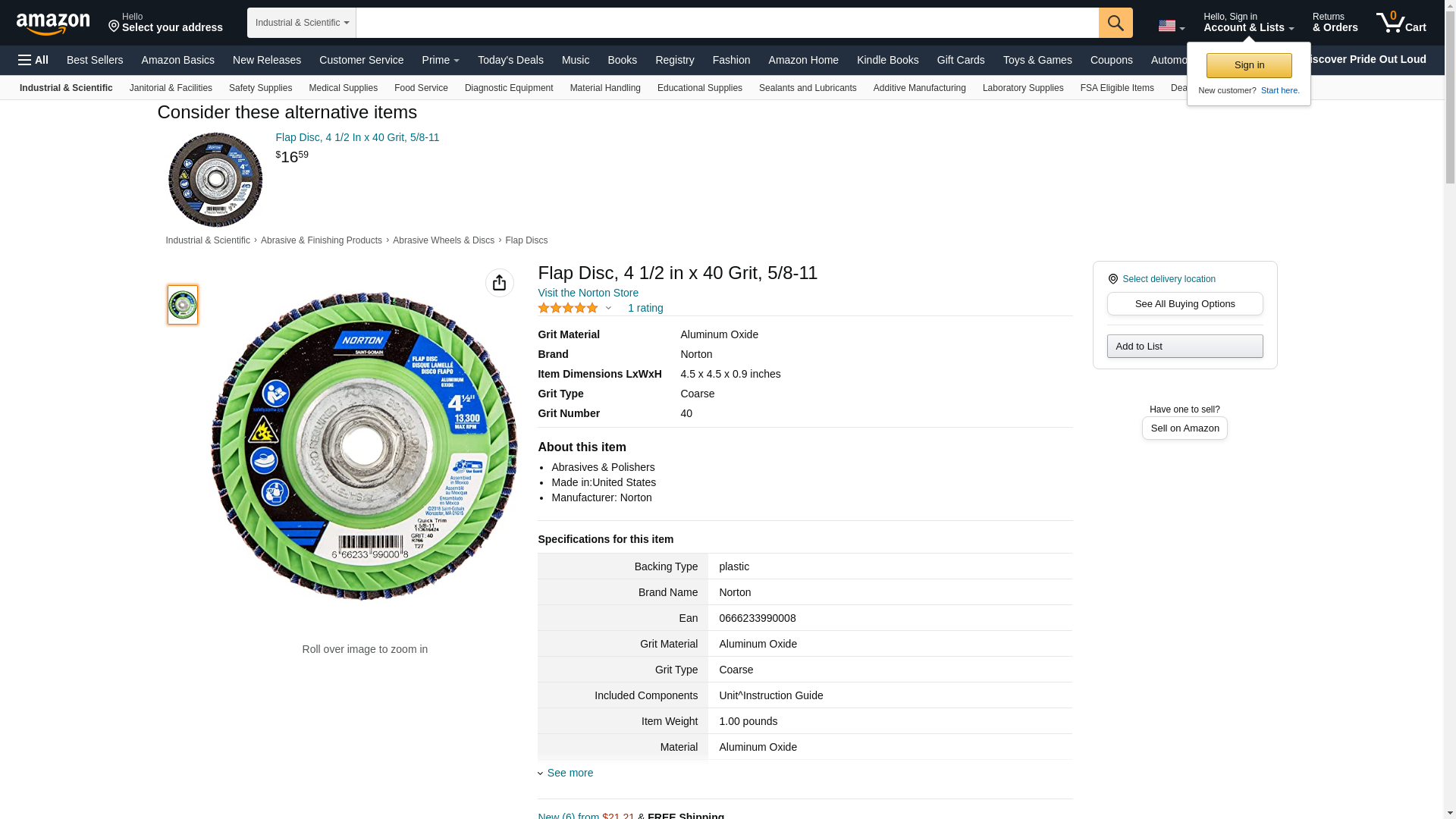 | Feature | Price For: Each Abrasive Type: Coated Item: Flap Disc Disc Type: Type 27 Backing Material: Plastic Abrasive Material: Aluminum Oxide Backing Weight: Y Mounting Size: 5/8-11 Disc Dia.: 4-1/2" Series: Neon Max. RPM: 13, 300 Grit: 40 Grade: Coarse Country of Origin (subject to change): France |