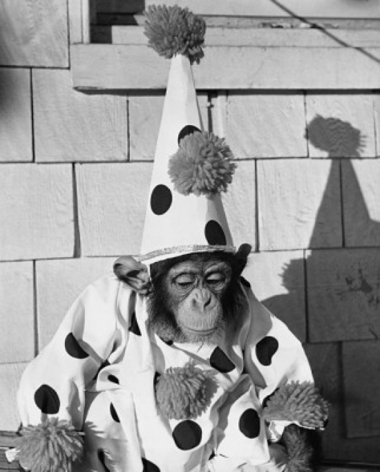 Posterazzi SAL9901546 Close-Up of a Chimpanzee Wearing a Clown Costume Poster Print - 18 x 24 in.