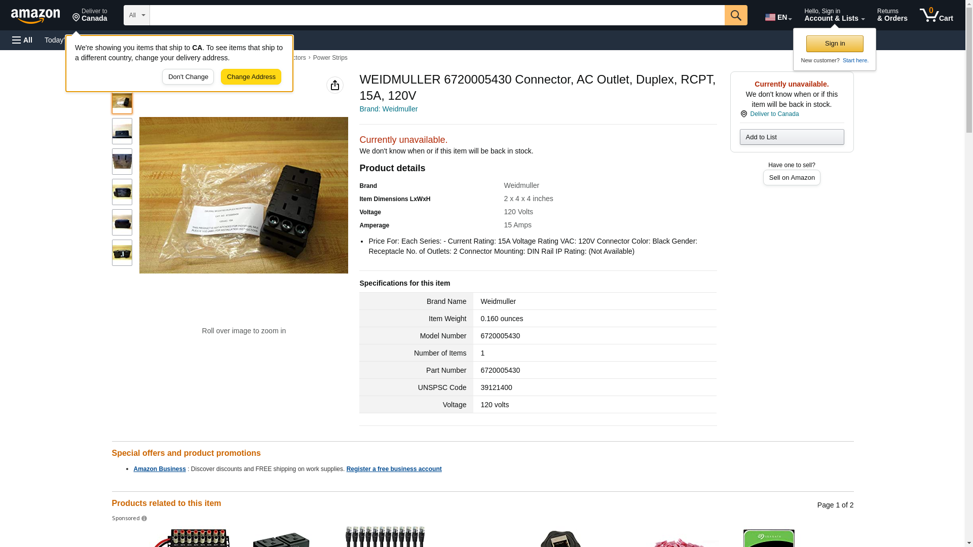 Weidmuller Connector, Ac Outlet, Duplex, Rcpt, 15A, 120V - 6720005430