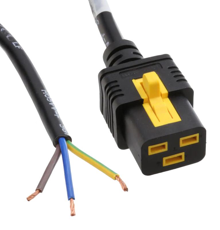 SCHURTER 6051.2109 Mains Power Cord, IEC 60320 C19, Free End, 9.8 ft, 3 m, Black