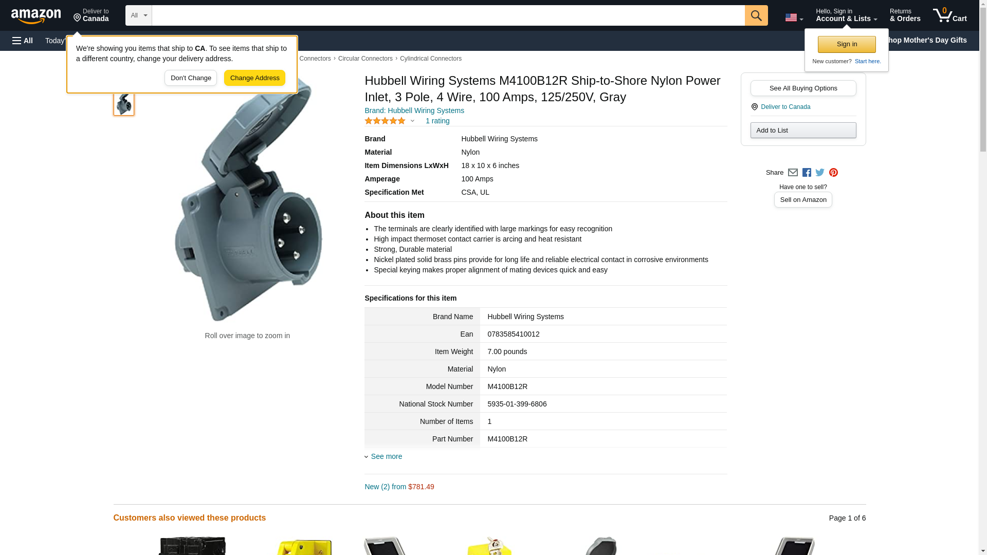 - <b>Price For:</b> Each <b>Standards</b>: UL listed, CSA certified <b>Amps</b>: 100 <b>Voltage</b>: 125/250VAC <b>Body Material</b>: Nylon <b>Phase</b>: 3 <b>Number of Wires</b>: 4 <b>Number of Poles</b>: 3 <b>Item</b>: Pin and Sleeve Inlet <b>Features</b>: Abuse Resistant <b>Color</b>: Gray <b>Country of Origin (subject to change)</b>: United States