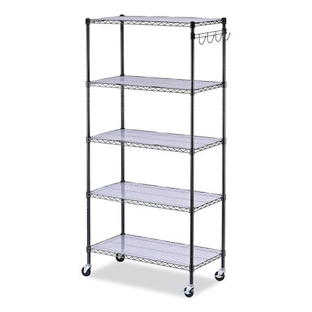 Alera 5-Shelf Wire Shelving Kit with Casters and Shelf Liners, 36w x 18d x 72h, Black Anthracite