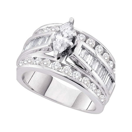 14k White Gold Marquise Diamond EGL Certified Bridal Wedding Anniversary Band 2.00 Cttw. †Combined diamond weight of 2.00 carats total weight represents a range of 1.95 - 2.05 cts. t.w.
