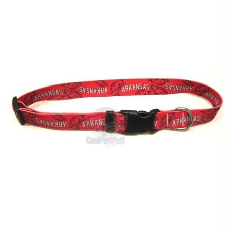Show support of your favorite team with this adjustable nylon officially NCAA licensed pet collar! This collar closes with a hard plastic locking clasp for easy access on and off. Best of all they are washable! <br /> <ul> <li>Officially licensed product</li> <li>Made of vibrant color-fast polyester</li> <li>Adjustable sizing <br /></li> <li>Sturdy quick release plastic clasp</li> <li>Secure, non-rust D-ring for tag and leash attachment<br /></li> <li>100% guaranteed by the manufacturer against defects, chewing, fading, and fraying</li> <li>Washable</li> </ul> <span style="font-weight: bold;">Important Note: </span>Size XS has a different design than the other sizes due to the collar width being too narrow to fit the design used on other sizes. Please see pictures for details. <br /> <br /> <table style="width: 348px; height: 137px;" align="left"> <tbody> <tr> <td style="border: 1px solid rgb(0, 0, 0); font-weight: bold;">SIZE</td> <td style="border: 1px solid rgb(0, 0, 0); text-align: center;"><span style="font-weight: bold;">WIDTH</span><br /></td> <td style="border: 1px solid rgb(0, 0, 0); font-weight: bold; text-align: center;">NECK</td> </tr> <tr> <td style="border: 1px solid rgb(0, 0, 0);">XSmall</td> <td style="border: 1px solid rgb(0, 0, 0); text-align: center;">3/8 inch<br /></td> <td style="border: 1px solid rgb(0, 0, 0); text-align: center;">8"-12"<br /></td> </tr> <tr> <td style="border: 1px solid rgb(0, 0, 0);">Small</td> <td style="border: 1px solid rgb(0, 0, 0); text-align: center;">3/4 inch<br /></td> <td style="border: 1px solid rgb(0, 0, 0); text-align: center;">10"-14"</td> </tr> <tr> <td style="border: 1px solid rgb(0, 0, 0);">Medium</td> <td style="border: 1px solid rgb(0, 0, 0); text-align: center;">3/4 inch<br /></td> <td style="border: 1px solid rgb(0, 0, 0); text-align: center;">14"-20"</td> </tr> <tr> <td style="border: 1px solid rgb(0, 0, 0);">Large</td> <td style="border: 1px solid rgb(0, 0, 0); text-align: center;">1 inch<br /></td> <td style="border: 1px solid rgb(0, 0, 0); text-align: center;">18"-28"</td> </tr> </tbody> </table> <br />