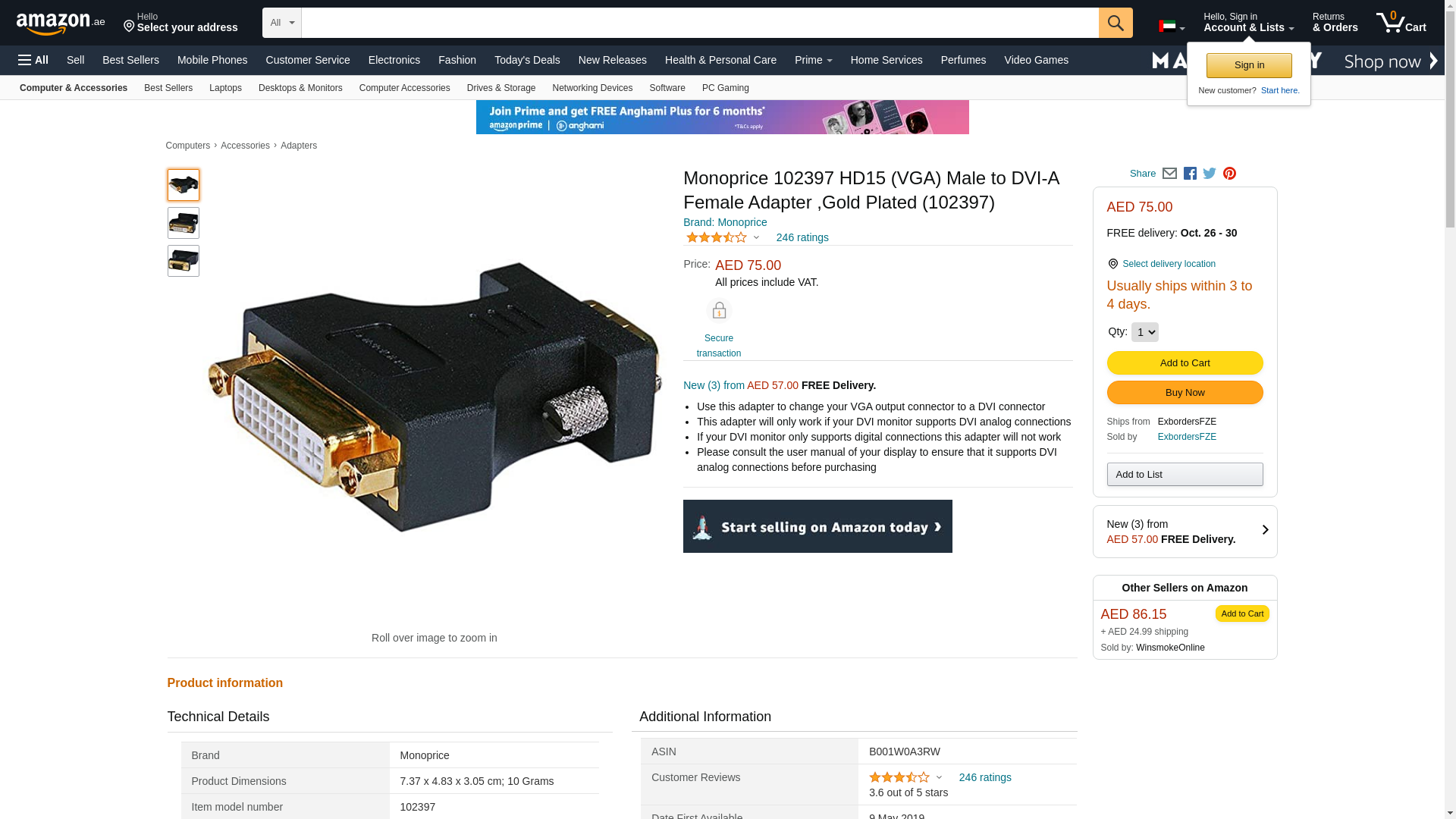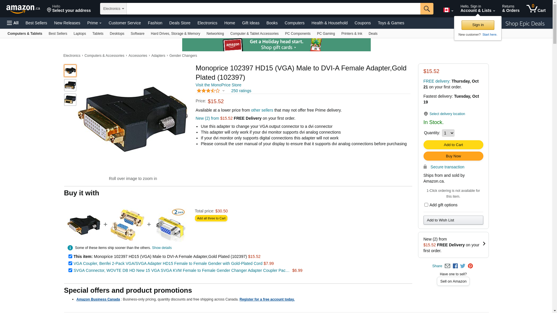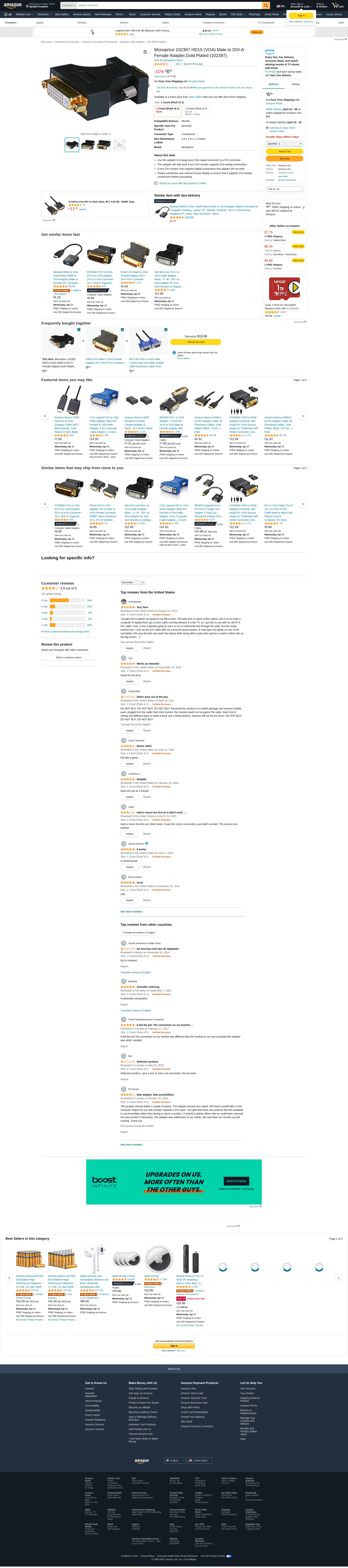 Buy Monoprice 102397 HD15 (VGA) Male to DVI-A Female Adapter,Gold Plated (102397): Electronics - Amazon.com ? FREE DELIVERY possible on eligible purchases