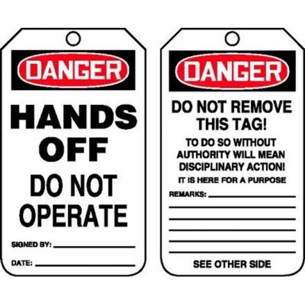 Order MDT162LTP by Accuform HS-Laminate Tag "Hands Off Do Not Operate" - US Mega Store