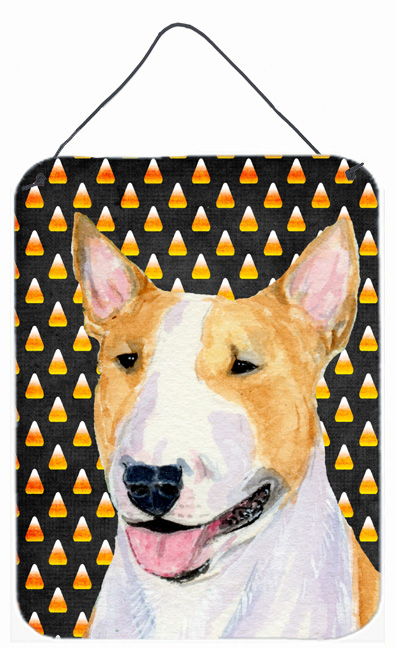 Carolines Treasures SS4289DS1216 12 x 16 in. Bull Terrier Candy Corn Halloween Portrait Aluminum Metal Wall & Door Hangi