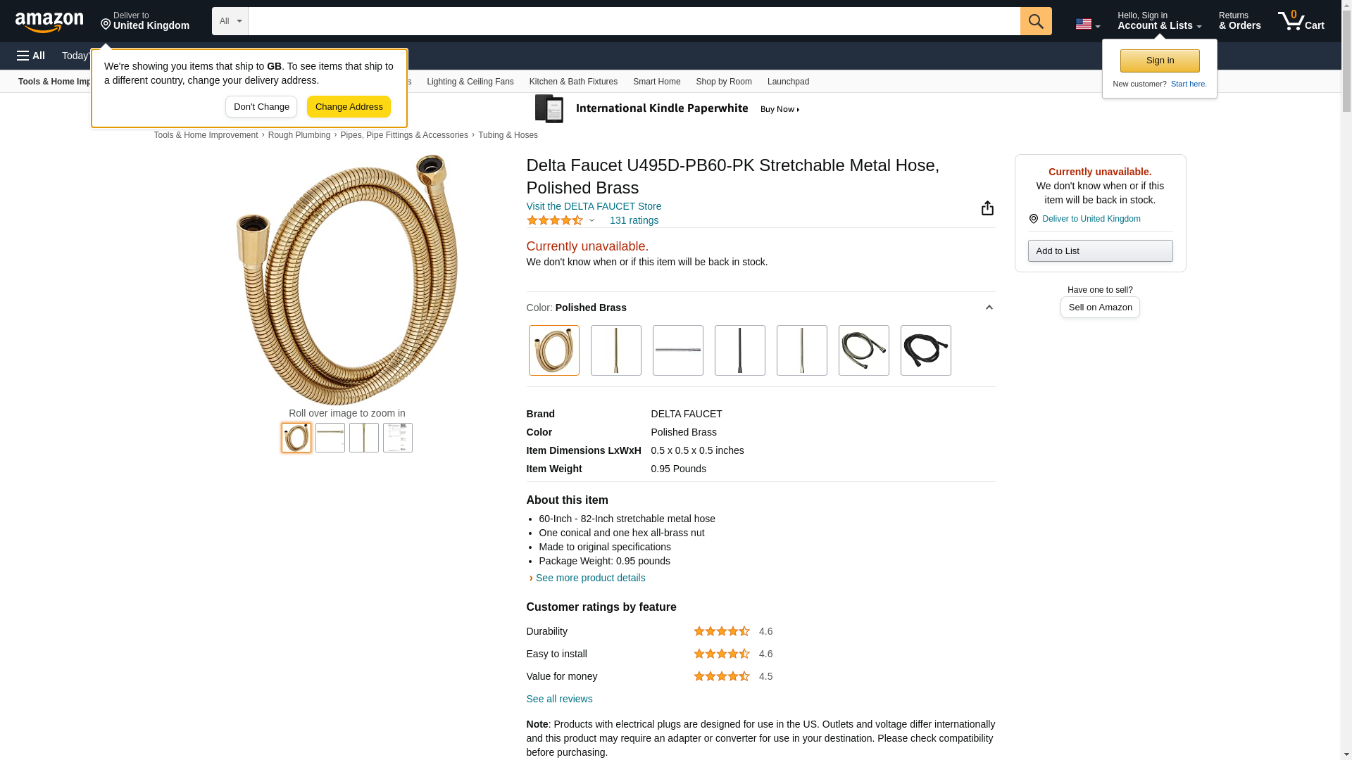 Delta Faucet U495D-PB60-PK Stretchable Metal Hose, Polished Brass