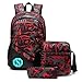 School Backpacks for Boys Girls Bookbag Upgrade Teens Backpack Set with Lunch Tote Bag and Pencil Case (Red 1)