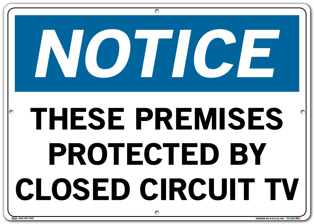Vestil SI-N-34-E-AL-063 Notice Sign Aluminum .063" Overall Size 20.5"W x 14.5"H These Premises Protected by Closed Circuit TV , 14.5" Height, 20.5" Wide, 0.063" Length