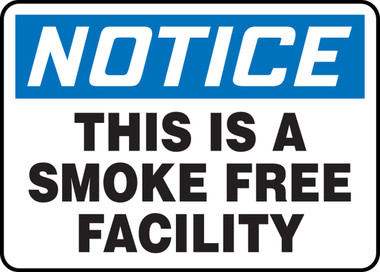 Accuform MSMK849XT Legend "Notice This is A Smoke Free Facility" Sign, 10" Height, 14" Wide, 10" Length, 0.060" Thickness, Dura-Plastic, Blue/Black on White