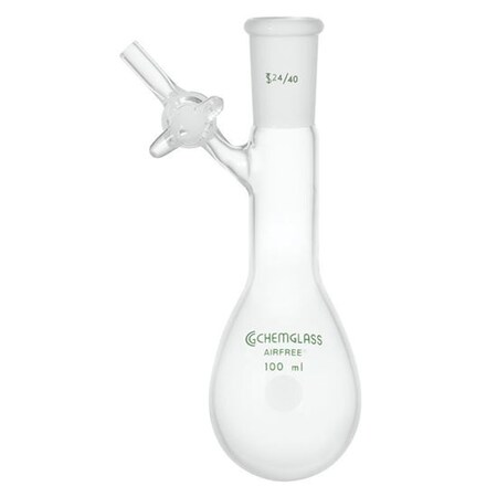 Chemglass AF-0520-27 Series AF-0520 Reaction Flask, Airfree, Schlenk, Valve, Single Neck, 24/40 Outer Joint, 500 mL Capacity