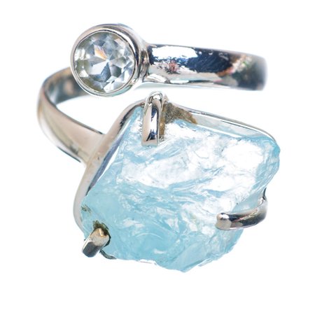 Ana Silver Co Rough Aquamarine, Blue Topaz 925 Sterling Silver Ring Size 7 Adjustable - Handmade Jewelry RING877482