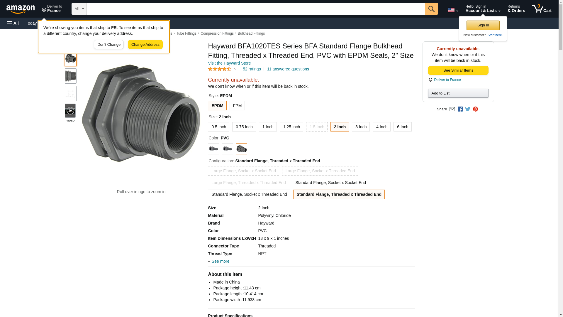 Hayward BFA1020TES 2-Inch Gray PVC Thread by Thread BFA Series Bulkhead Fitting with EPDM Standard Flange Gasket
