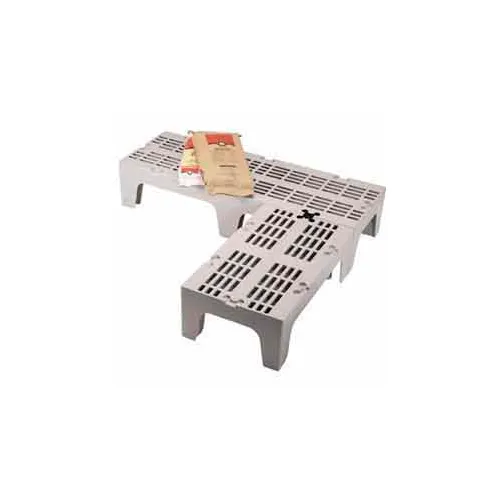 Slotted Dunnage Rack has a one piece polypropylene construction and sturdy legs make this rack built to last. Perfect for coolers or freezers. Slotted top for maximum air circulation around perishable foods. NSF listed. 1500 lbs. load capacity. 19 lbs. Use with CamLinks #250-593, sold separately, to securely lock multiple racks together.