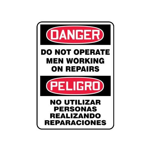Danger DO NOT Operate Men Working ON Repairs (Bilingual Spanish)