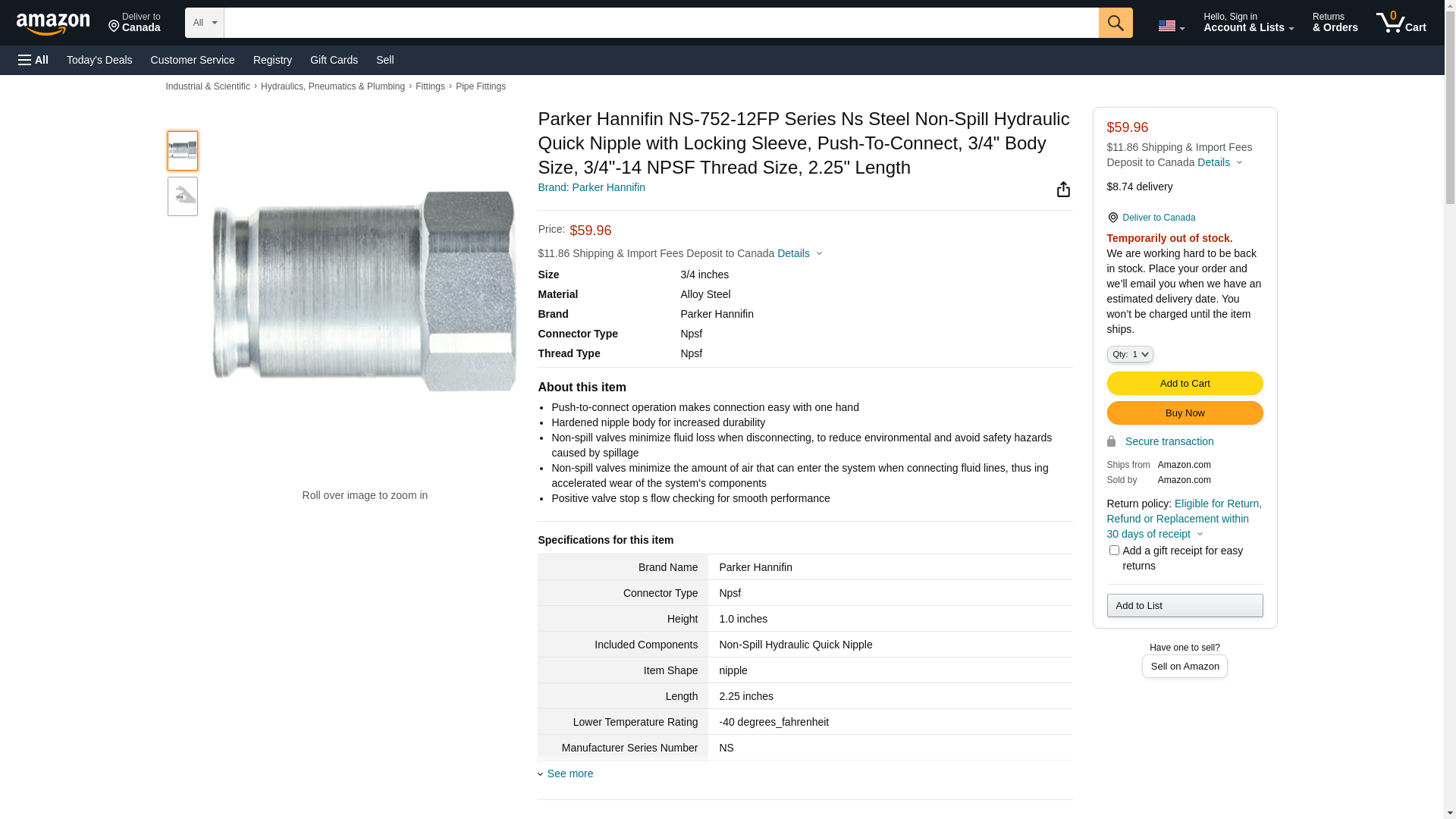 | Airline Hydraulics | PARKER NS-752-12FP | 1 | 1 | 1 @ $74.65 | |