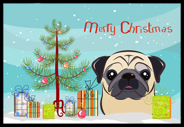 Caroline's Treasures BB1634MAT Christmas Tree and Fawn Pug Door Mat, Indoor Rug or Outdoor Welcome Mat 18x27 Doormat, 27" L x 18" W, Multicolor