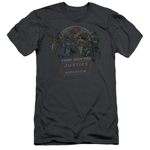 Trevco Dc-Join The Justice League - Short Sleeve Adult 30-1 Tee - Charcoal, Small