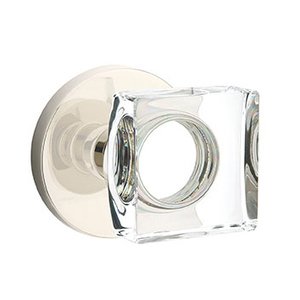 Crystal Door Hardware Collection - Modern Square Glass Passage Door Knob and Disk Rose with Concealed Screws in Polished Nickel by Emtek Hardware - C5109MSCUS14234 | MyKnobs