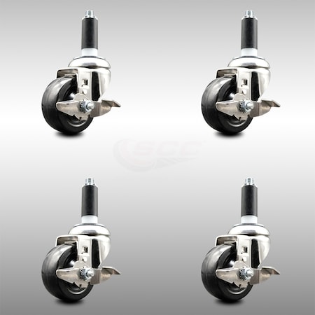 Service Caster Brand 3.5 Inch 316 Stainless Steel Light Duty Swivel Expanding Stem Caster Set of 4 Soft Rubber Caster Wheels and 1” Stem–800lbs. Total Cpty–Casters with Locking Brakes