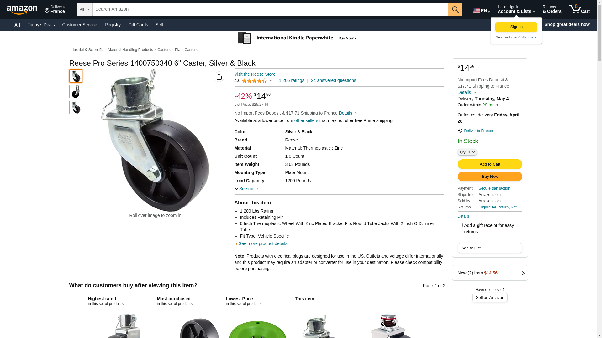 Reese Pro Series 1400750340 6" Caster, Silver & Black