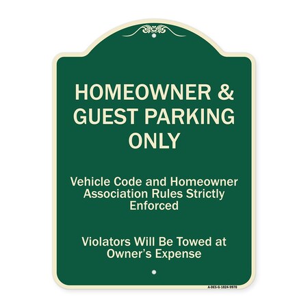 SignMission Designer Series Sign - Homeowner & Guest Parking Only | Green 18" X 24" Heavy-Gauge Aluminum Architectural Sign | Protect Your Business & Municipality | Made in The USA