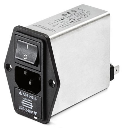Schaffner Iec Inlet Filter With Switch, Single Fuse And Voltage Selector 250Vac, 1A, Faston, Earth Line Choke - FN393E-1-05-11