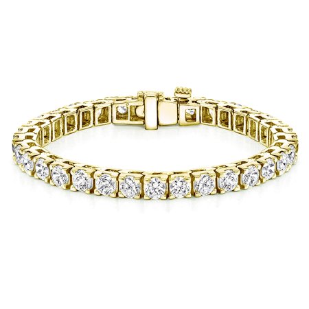 This stylish tennis bracelet showcases a 16ct TDW round cut diamonds in prong settings. This beautiful bracelet is available in 18-karat white or yellow gold and shines with a high polish finished. <br /> <br /> <ul> <li>Jewelry Type: Fine</li> <li>Gold Karat: 18k</li> <li>Total Diamond Weight: Over 3 Carats</li> <li>Jewelry Setting: Prong</li> <li>Diamond Cut: Round</li> <li>Stone: Diamond</li> <li>Clarity: VS1-VS2</li> <li>Clasp: Box</li> <li>Cut Grade: Very Good</li> <li>Bracelet Style: Tennis</li> <li>Jewelry Finish: High Polish</li> <li>Diamond Color: J-K</li> <li>Metal Color: White, Yellow</li> <li>Metal: Gold</li> <li>Length: 7 Inch</li> </ul> <br /> <br />