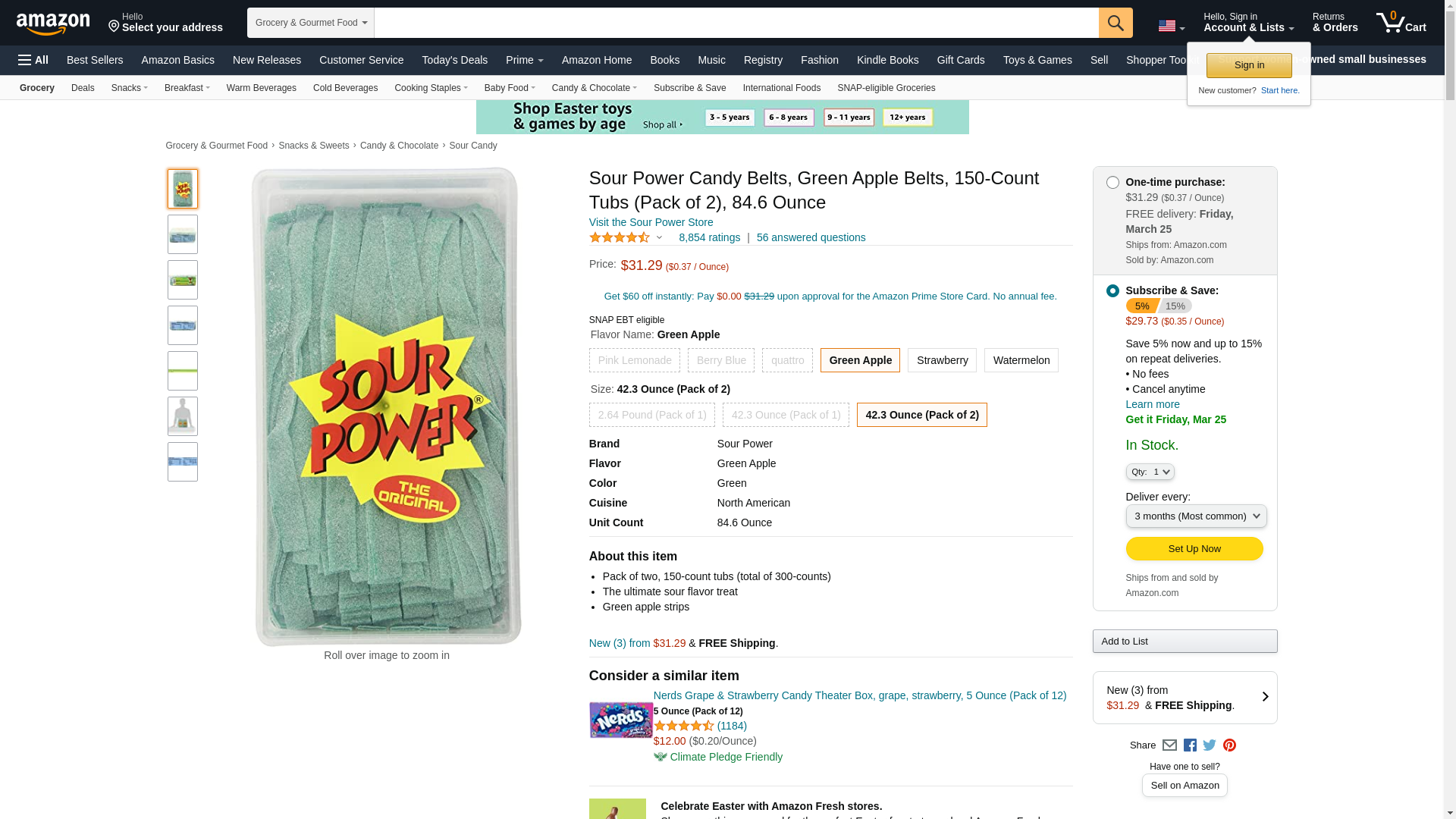Sour Power Candy Belts, Green Apple Belts, 150-Count Tubs (Pack of 2): Maxedbuy.com