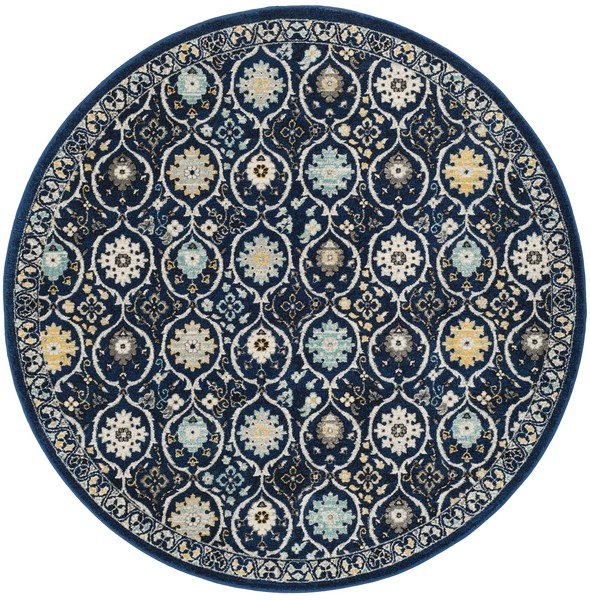 Safavieh EVK210A-7R 6 ft. 7 in. x 6 ft. 7 in. Round Evoke Power Loomed Rug, Royal & Ivory